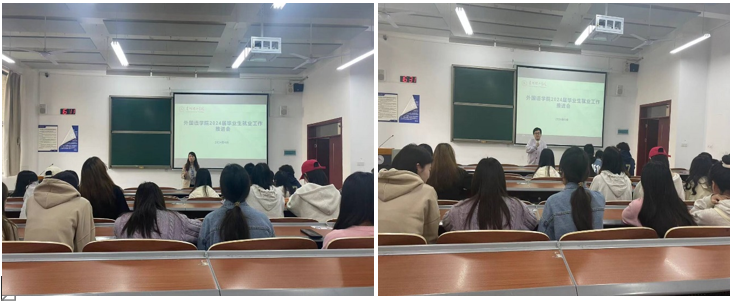 本网讯(外国语学院 王雪丽)为进一步推进2024届毕业生就业工作,我院在2020级学生完成为期4周的毕业实习工作返校后,2024年4月10日下午,在开物楼1107教室召开2024届毕业生就业工作推进会。会议邀请学工部副部长邹勇作就业工作指导,学院党政负责人、全体辅导员、毕业班班主任以及2024届全体毕业生参加。会议由学院党总支副书记杜玉红主持。