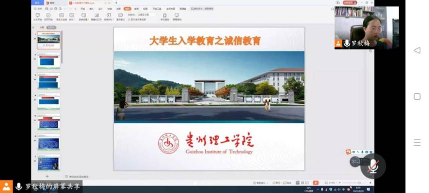 英语211班班主任罗秋梅为21级新生讲授了以“诚信教育”为主题的入学教育第一课。主要围绕诚信的内涵和重要性,剖析诚信的本质,从国家和个人方面分别用具体案例真实讲述大学生失信过程及严重后果,列举大学生失信表现,最后将诚信教育深入到规章制度,以此规范学生的行为习惯,积极引导新生树立诚实守信的观念。