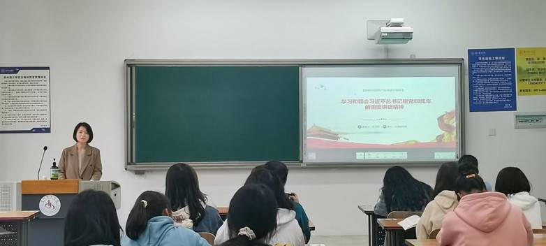 宣讲会上,杜玉红带领同学们学习习近平总书记“七一”重要讲话精神,主要从“中国共产党的百年光辉历程、中国共产党的伟大建党精神、以史为鉴、开创未来的根本要求以及寄语青年”四个方面进行宣讲,给同学们上了一堂生动的宣讲课。