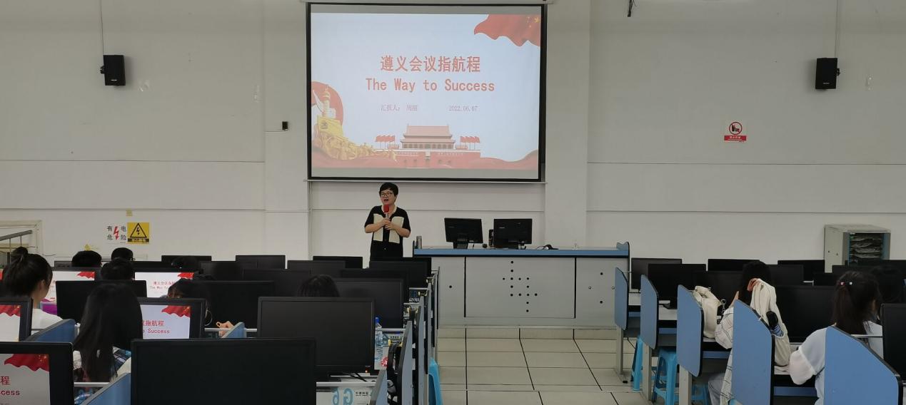周丽以《遵义会议指航程》为题,和同学们一起回顾遵义会议的深远意义,深刻体会“坚定信念,实事求是,独立自主,敢闯新路,民主团结”的遵义会议精神内涵,进而讲述中国共产党为什么能,中国特色社会主义为什么好。同时结合同学们的专业,带领同学一起观看我院教师制作的全英文课程思政案例《遵义会议指航程》视频,激励同学们好好学习,奋发向上。