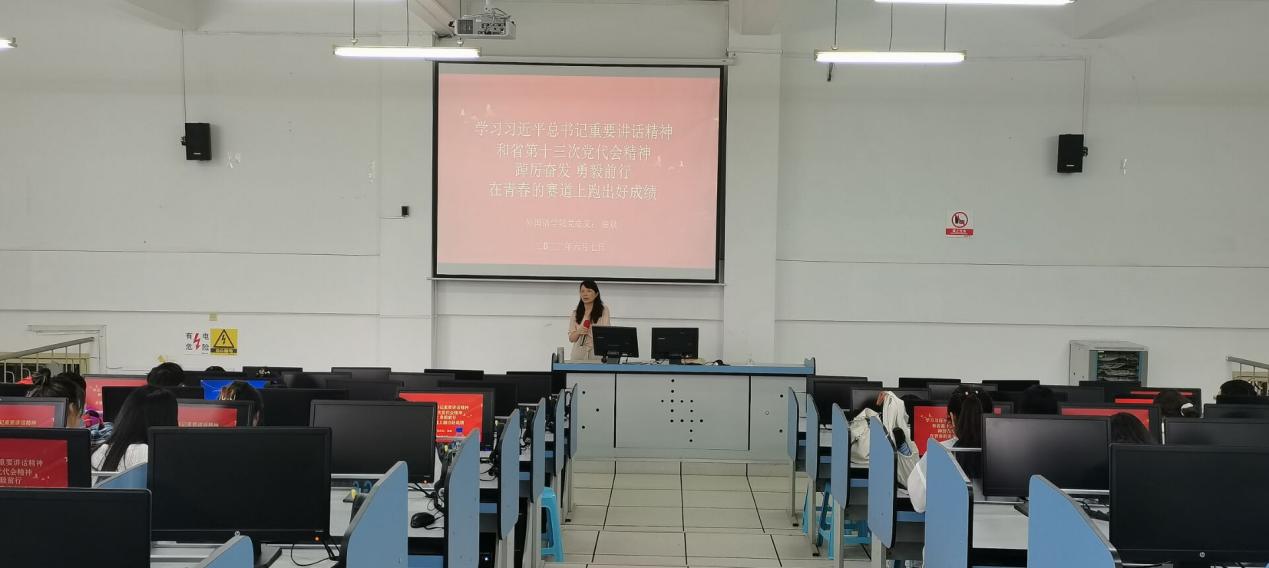 徐焱以《学习习近平总书记重要讲话精神和省第十三次党代会精神 踔厉奋发 勇毅前行 在青春的赛道上跑出好成绩》为题,围绕习近平总书记在庆祝共青团成立100周年大会上的重要讲话精神和省第十三次党代会精神进行宣讲,讲解省第十三次党代会的重大意义,和同学们一起学习贵州省在过去五年间取得的历史性成就及经验启示、今后五年工作的总体要求和奋斗目标、重点任务等内容,勉励同学们以习近平总书记对青年的谆谆教导和殷殷期望为指引,做理想远大、信念坚定的模范,做刻苦学习、锐意创新的模范,做敢于斗争、善于斗争的模范,做艰苦奋斗、无私奉献的模范,做崇德向善、严守纪律的模范,努力学习,勇创佳绩,以优异成绩迎接党的二十大胜利召开。