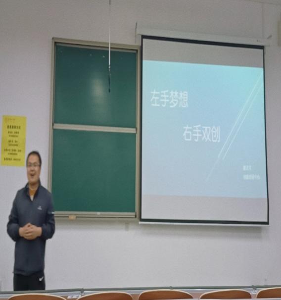 本网讯(外国语学院 吴成美)5月12日下午,我院举办了以“左手梦想·右手双创”为主题的创新创业讲座。创新创业教育已经成为当前高校教育的重要内容之一,为了积极响应学校大学生创新创业训练计划项目等相关文件要求,加强学生创新创业意识以及对创新创业的了解,提高学生创新创业能力,外国语学院特邀请双创中心董法保老师作专题讲座。我院21级、22级学子们聆听了讲座。