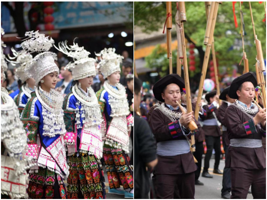 In Taijiang, numerous celebrations have been held since the government initiated the Sister Festival in 1998. The Sister Festival has become a prominent tourism brand in Taijiang for over two decades. Every year on the opening day of the festival, a huge parade team nearly a kilometer long is formed, with ten thousand Miao compatriots dressed in costumes, singing and dancing slowly along the streets, attracting tens of thousands of visitors from inside and outside the county to stop and watch. The costume performance is the highlight of the festival, featuring various transformations, Miao dance performances, production and life form displays, dragon lantern and flower lantern performances, etc. These convey the colorful Miao costumes and the daily life of Miao people in Taijiang, fully displaying the original ethnic culture of different branches, such as splendid Miao costumes, silver jewely, embroidery, etc. The festival recalls the ancient dream and romance of the age of group marriage of the Miao people.