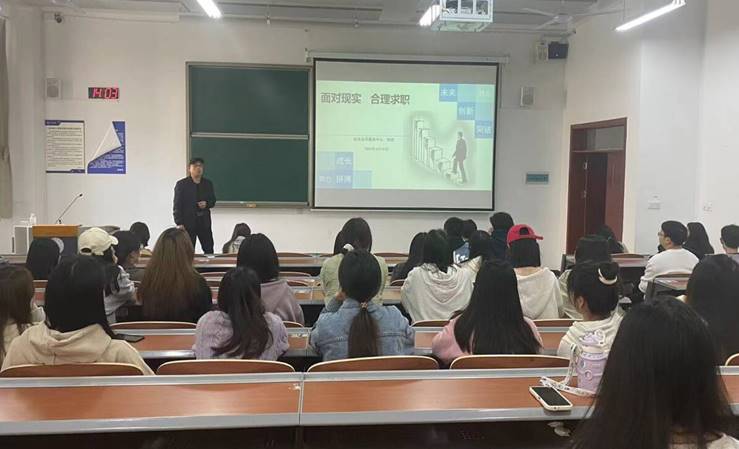 最后,学院党总支书记徐焱、院长周丽引导同学们要调整心态,树立先就业再择业的就业观,对自己进行准确的评估,结合自己的实际情况做出正确的择业选择,勉励同学们要自立自强,通过不断学习、不断提升自己,缩短现实和理想的距离,努力肩负起时代赋予的社会责任,并祝愿同学们早日找到自己理想的工作。