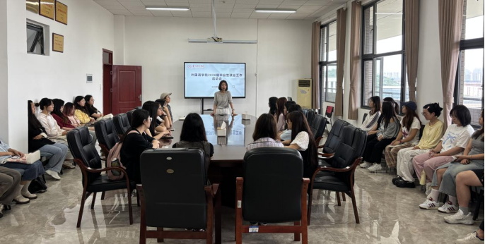 本网讯(外国语学院 黄超禹)为扎实推进2026届毕业生就业工作,帮助毕业生提前了解就业政策、把握就业形势、明确职业方向,外国语学院于2025年6月24日上午组织2026届毕业生在开物楼1524会议室召开就业动员会。学院党总支书记、副书记、毕业班辅导员、班主任及2026届全体毕业生参加。