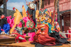 Anshun Opera,a local traditional drama in Anshun city,Guizhou Province,is one ofthenational intangible cultural heritages.Anshun Opera is popular and performedin Anshun,Pingba,Huishui and other cities.According to legend, the local opera got its start when forces from the Ming and Qing dynastiesentered Guizhou. The actor wears a face mask and played with short weapon, yet they have a large range of motion.On May 20, 2006, Anshun Opera wasdeclaredbythe State Council of the PRCto beadded tothelist China’snational intangible cultural heritage.
