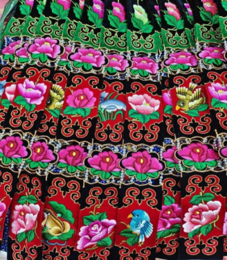 In terms of craft techniques, Miao embroidery employs various techniques such as plain stitch, tin stitch, split line stitch, and pile stitch. Many of these techniques are unique and have been added into the list of China's national intangible cultural heritage.