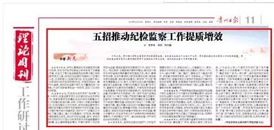 10月16日,《贵州日报》理论周刊板块、学习强国贵州学习平台刊登中国足球彩票:纪委书记、省监委驻贵州理工学院监察专员贺梦依署名文章:《五招推动纪检监察工作提质增效》。