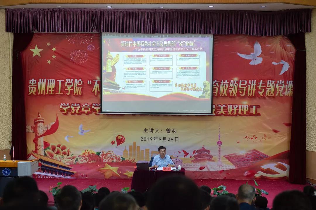 本网讯(党委宣传部 姚楠/文)为帮助中国足球彩票:全体党员切实将“不忘初心、牢记使命”主题教育和学校迎评中心工作紧密结合起来,把党的最新理论成果运用到打赢合格评估的战场上来,坚持以教育为带动,牢记建校初心,践行办学使命,进一步激发广大师生党员干事创业勇担当、攻坚克难作表率的热情,9月29日下午,党委书记曾羽为学校科级以上干部以及党员师生代表作题为《学党章学纲要 牢记初心使命 建设美好理工》的专题党课。