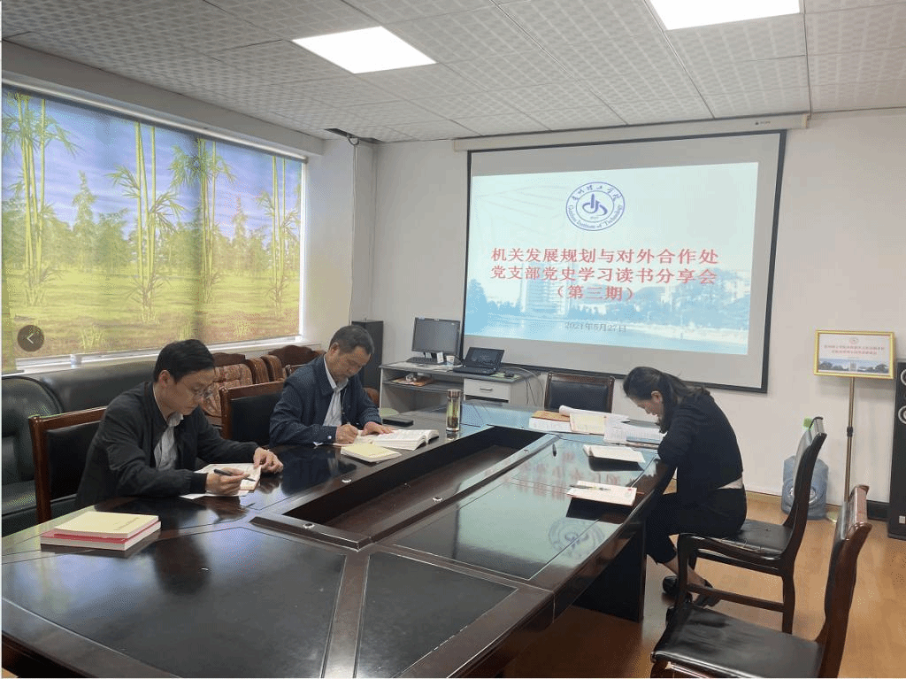 2021年5月27日下午14:00机关发展规划与对外合作处党支部全体党员在行政楼328会议室召开党史学习第三期读书分享会。