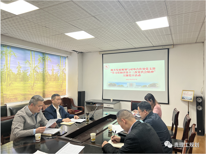 为深入学习贯彻省第十三次党代会精神,引导支部党员同志把思想和行动统一到省党代会精神上来,2022年5月17日,机关发展规划与对外合作处党支部在行政楼328会议室召开“学习贯彻省第十三次党代会精神”主题党日活动,支部全体党员同志及入党积极分子参会,会议由党支部书记彭勇同志主持。