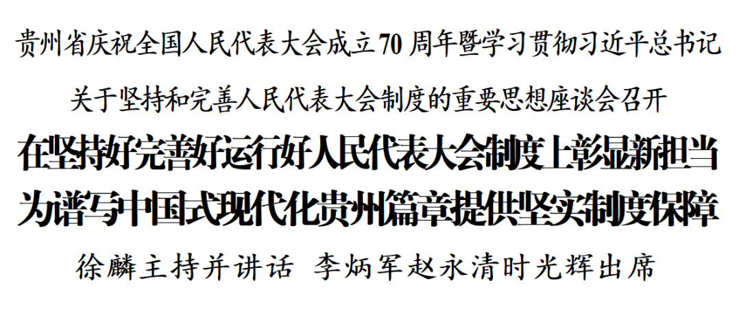 10月16日,贵州省庆祝全国人民代表大会成立70周年暨学习贯彻习近平总书记中国足球彩票坚持和完善人民代表大会制度的重要思想座谈会在贵阳召开。省委书记、省人大常委会主任徐麟主持会议并讲话。省委副书记、省长李炳军,省政协主席赵永清,省委副书记、省委政法委书记时光辉,省委常委,省人大常委会、省政府、省政协有关负责同志,部分曾担任过省人大常委会领导职务的老同志出席。