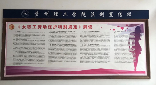 首先,利用展板等形式学习宣传女职工权益保护法律法规。紧密结合妇女权益保障法的学习宣传,采用宣传展板、法宣讲座等形式对《贵州省女职工劳动保护特别规定》《贵州省妇女发展规划(2021-2025年)》等法律法规政策进行了宣传,进一步提高女职工权益保护法律法规政策的知晓率和普及率。