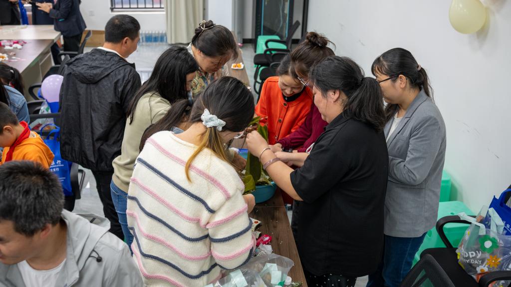 在“巧手包粽”环节,大家沉浸式体验了传统民俗的魅力。现场准备了新鲜的粽叶、雪白的糯米等包粽材料,专业师傅耐心地向大家讲解包粽子的技巧和步骤,并进行示范。大家纷纷动手跃跃欲试,捋粽叶、填糯米、扎棉线……尽管手法略显生疏,但大家热情高涨,互帮互助。时逢六一儿童节,孩子们表演回来加入其间,在欢声笑语中,一个个形态各异的粽子逐渐成形。大家一边包粽子,一边交流着端午习俗,感受着传统文化的深厚底蕴。