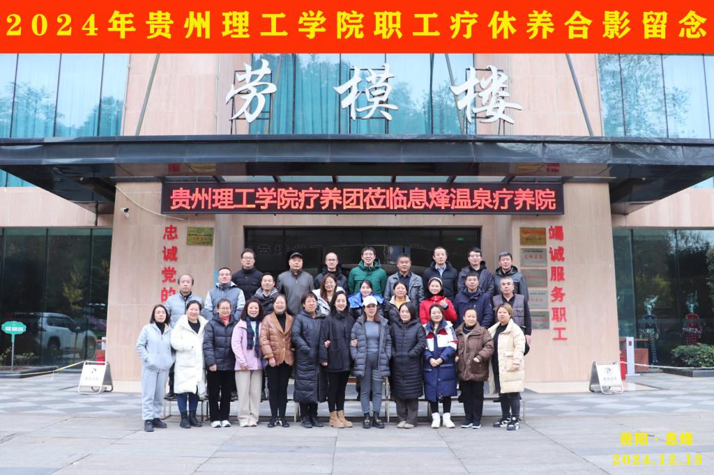 为不断促进教职工身心健康,调动广大教职工干事创业的激情,进一步弘扬劳动精神、劳模精神、工匠精神,贵州理工学院于12月12日至12月14日组织30名优秀教职工赴贵州省总工会息烽温泉疗养院开展疗休养活动。