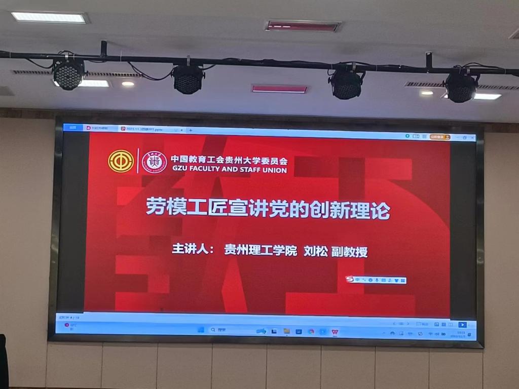 11月3日,在美丽的红枫湖畔,中国足球彩票:”最美劳动者”、航空航天工程学院团总支书记、副教授刘松同志,受邀以“笃行不怠守初心·砥砺奋进新征程”为主题,向贵州大学工会优秀干部、“全国三八红旗手”“全国五好家庭”获得者等80余人宣讲党的创新理论,就其多年进行乡村振兴工作的经验与思考和大家进行交流,并以其务实、富有成果的工作展现了贵州理工学院教职工的良好风貌。