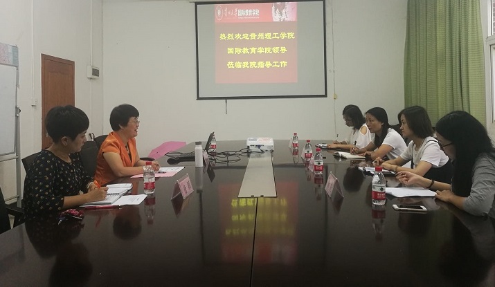 6月22日上午,国际教育学院院长乔靖、国际交流科科长杜玉红、汉语教师朱敏芳、林苑一行4人赴贵州大学国际教育学院就国际本科学生培养、教学、管理等方面学习调研。贵州大学国际教育学院院长张成霞、教务科研科科长唐颖参加座谈。
