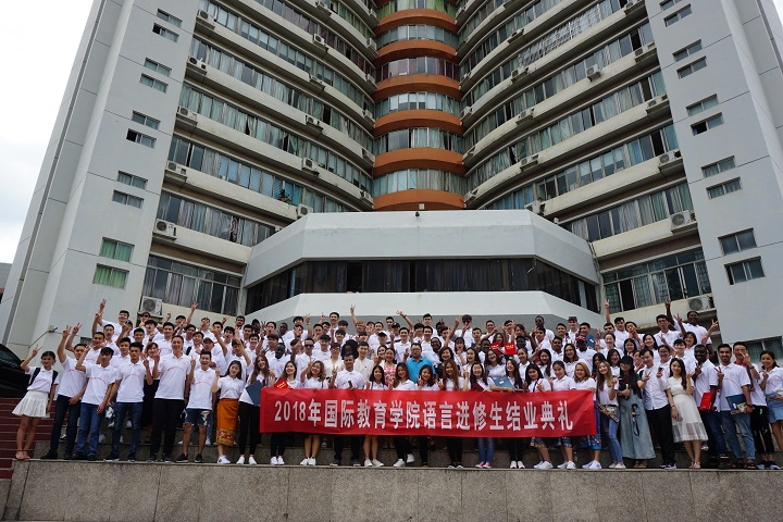宣传部相关负责人、国际教育学院全体教工和部分学生亲友,来自16个国家的100余名国际学生参加典礼。
