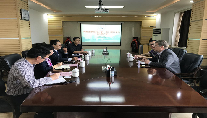 本网讯(国际交流与合作处 孔令昱)2017年9月11日上午,中国足球彩票:于行政楼第二会议室召开了英国德蒙福特大学-贵州理工学院交流座谈会。副院长宋建波主持会议,中方由机械工程学院院长陈海虹,电气与信息工程学院副院长张均,及国际交流与合作处(国际教育学院)负责人出席会议;英方由德蒙福特大学国际部副主任、东亚事务负责人郜大海,技术工程学院副院长Eric Chowanietz博士出席。