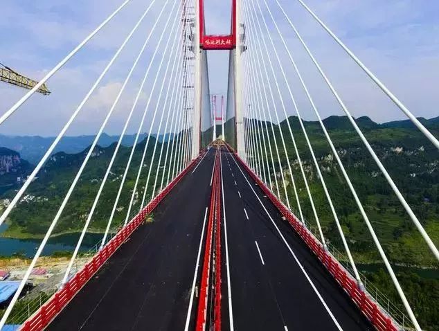 国际学生们通过贵黔高速鸭池河大桥——世界跨径最大的钢桁梁斜拉桥时异常兴奋,特别是即将在9月份进入土木工程专业的同学们。目前,贵州的特大峡谷桥梁数量位居世界第一,共有公路桥梁2.1万座,世界前100名高桥中有40多座在贵州,是世界上特大峡谷桥最密集、数量最多的地区,堪称世界‘桥梁博物馆’。