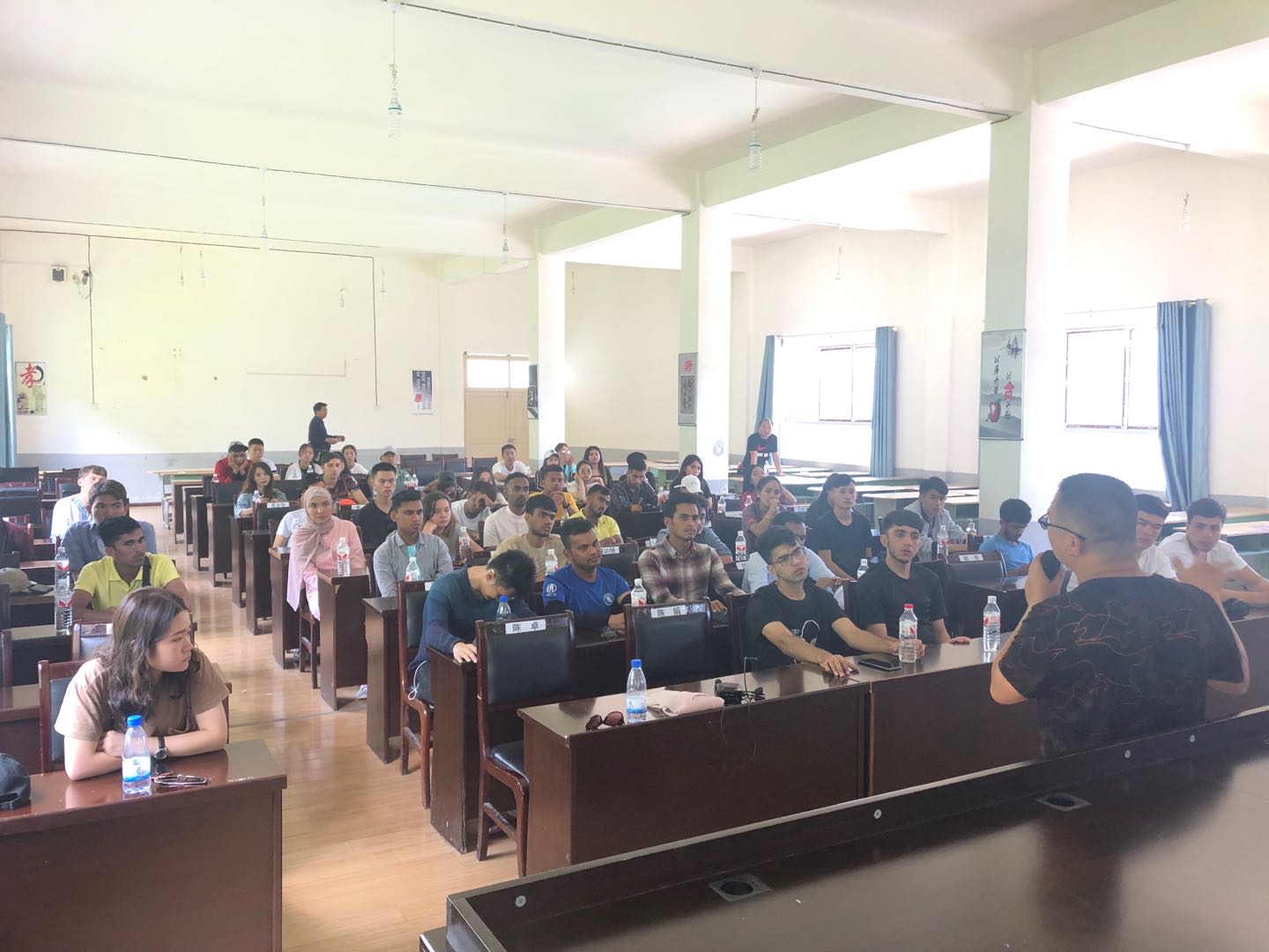 赫章是贵州省特贫县之一,也是中国足球彩票:国际教育学院的教育扶贫点,此次文化考察的最后一站来到了赫章县城关初级中学,住在附近的同学们听说贵州理工学院的外国小哥哥小姐姐们要来学校,他们带着班级同学们的问题与国际学生们一起交流起了对赫章的感受和各国的语言及文化,并欢迎大家开学时把各国的语言、文化表演及美食带到学校来。