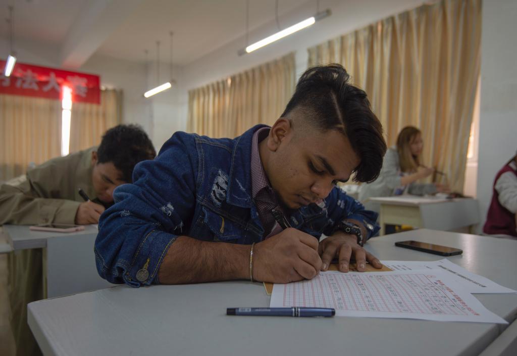 为进一步弘扬中华民族书法文化传统,丰富校园文化底蕴,激发国际学生学习汉字的兴趣,培养国际学生认真书写的良好习惯,提高学生书写水平,展示学院教学成果。2019年11月23日下午举行了第二届国际学生书法大赛,来自12个国家的69名学生参加了比赛。