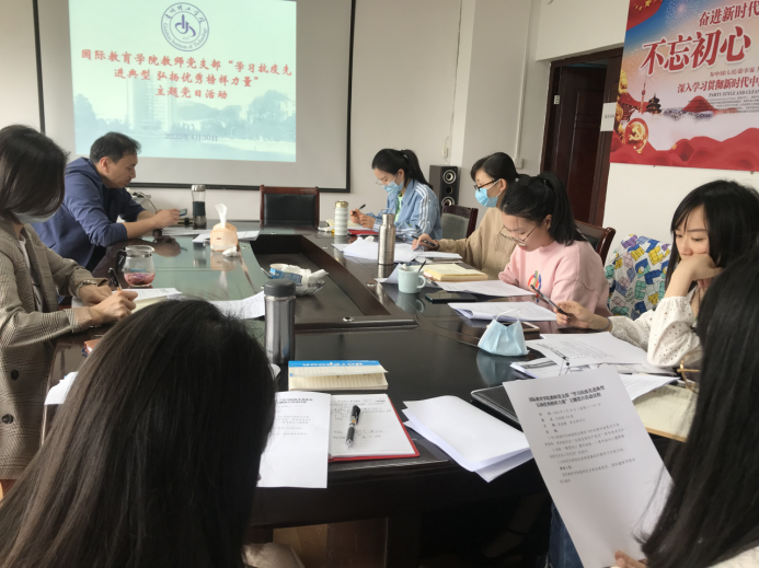 2020年4月30日上午,国际教育学院教师党支部组织全体党员召开支部大会,并邀请国际教育学院非党员教师一同开展“学习抗疫先进典型 弘扬优秀榜样力量”主题党日活动。