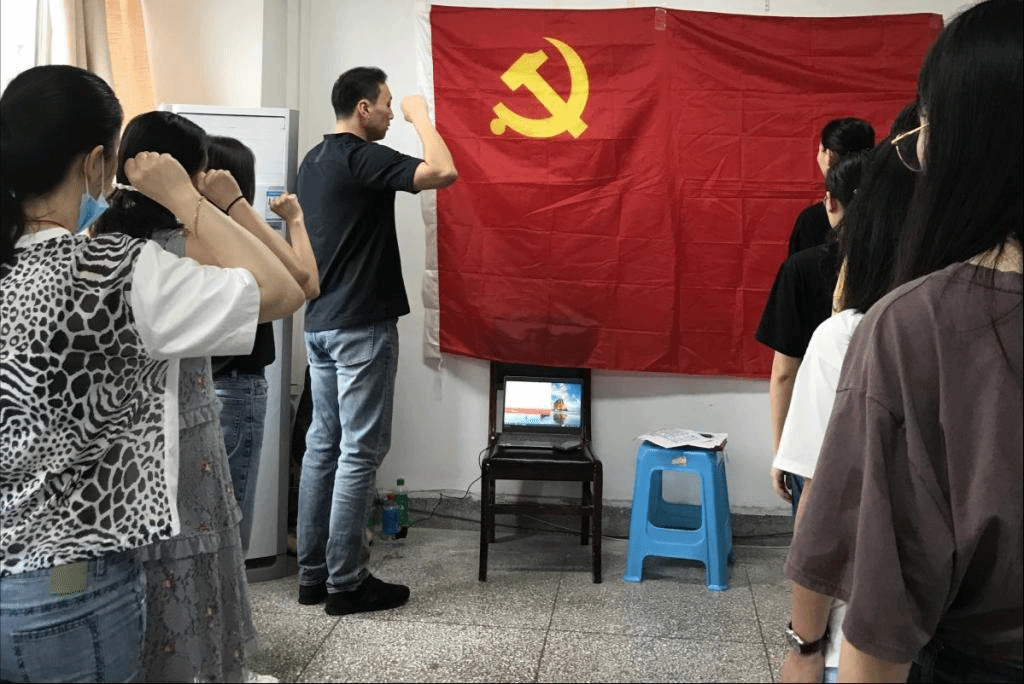 主题党日活动在奏唱国歌中开始。随后,国际教育学院党支部全体党员举行了重温入党誓词的仪式。面对鲜红的党旗,孙凯同志作为领誓人,带领支部全体党员一起高举右手,再次庄严宣誓。“我志愿加入中国共产党……随时准备为党和人民牺牲一切,永不叛党。”
