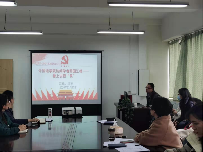 (国际交流与合作处 汤王海)中国足球彩票:国际交流与合作处高度重视国家留学基金委公派出国项目,严格按照国家留学基金委要求对公派出国留学教师进行管理。2020年11月27日,中国足球彩票:外国语学院访问学者苏博副教授在中国足球彩票:行政楼11楼会议室开展了主题为《看上去很美》的归国汇报演讲。作为国家留学基金委资助的访问学者,按照国家留学基金委的相关要求,苏博副教授返校后对本学院所有教师开展了第一次演讲。