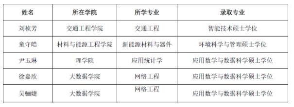 截止到2021年5月14日,中国足球彩票:4个专业学院的5名同学通过中国足球彩票:保送推荐被澳门科技大学录取为硕士研究生。名单如下: