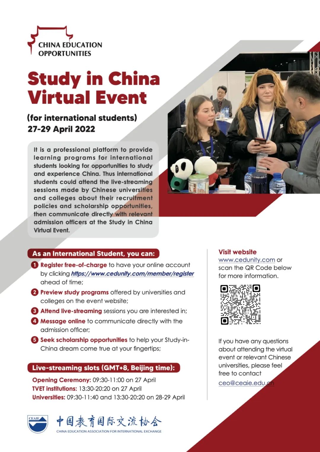 The China Education Opportunities Virtual Event 2022 will begin soon.