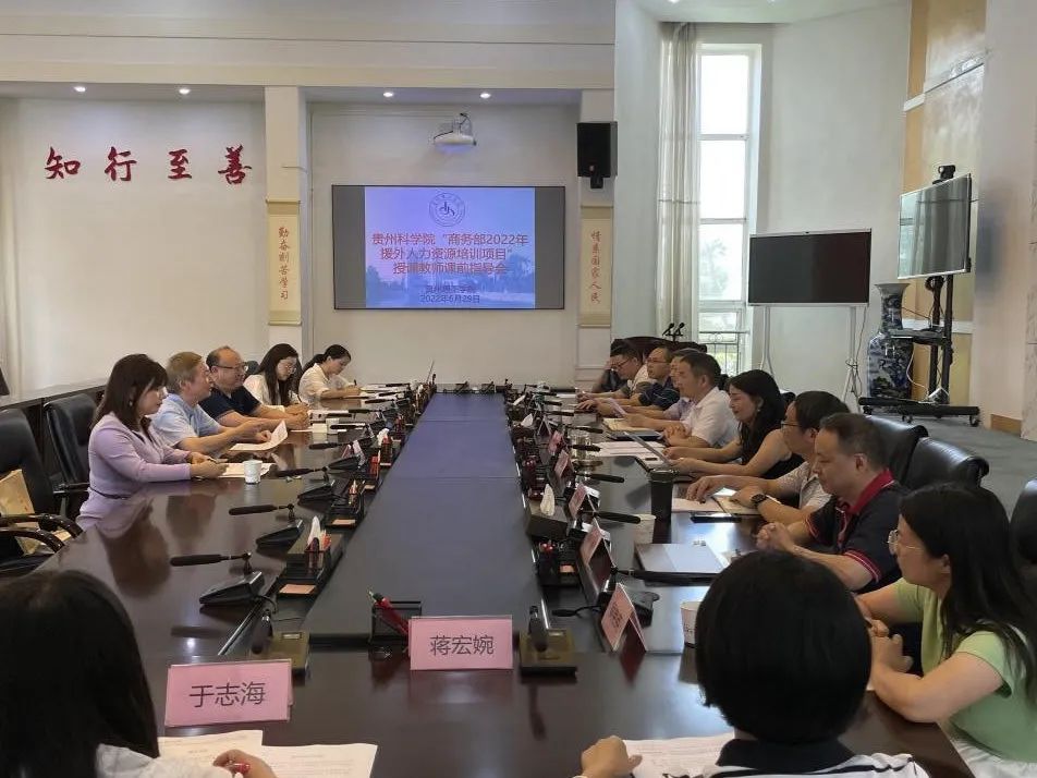 6月29日下午,中国足球彩票:召开贵州科学院“商务部2022年援外人力资源培训项目”授课教师课前指导会。贵州科学院原党委委员、副院长李丹宁,对外合作处处长瓦文龙及相关工作人员到会指导,中国足球彩票:党委委员、副院长林长松、国际交流与合作处负责人、10名授课教师及相关工作人员参加会议。