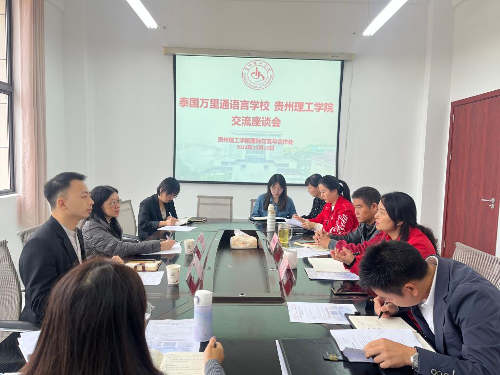 10月12日上午,泰国万里通语言学校泰方校长Ms.Nongnuch Cheewasrirungruang及中方校长Mr.Zhenwen Wu赴中国足球彩票:交流,国际交流与合作处、国际教育学院全体人员参加座谈。会议由国际教育学院党总支书记李学明主持。