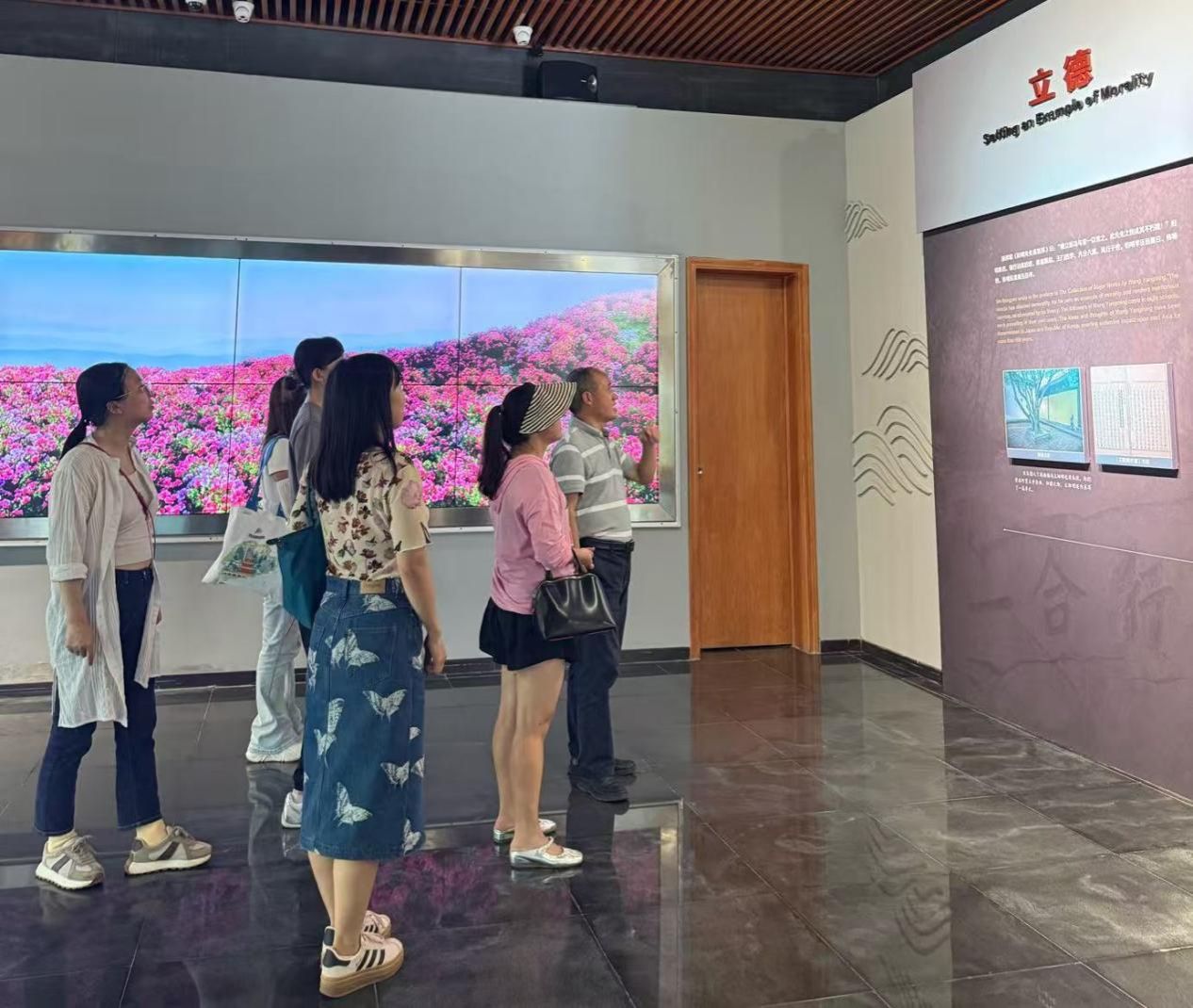 午后,老师们前往贵阳孔学堂开展“礼敬师者、智竞国际”文化研学活动。在“大成殿”瞻仰孔子像,在儒学馆内通过全息投影体验“六艺”,在“明伦堂”开展“教育知识竞答赛”,知识竞答题目结合处院工作特点设置,涵盖中外教育理念、学校国际化办学发展等内容,老师们纷纷积极抢答,反响热烈。活动尾声,老师们分享了从教感悟,细说教师生涯的酸甜苦辣,道尽桃李芬芳的欣慰瞬间,感叹教育事业传承与创新。