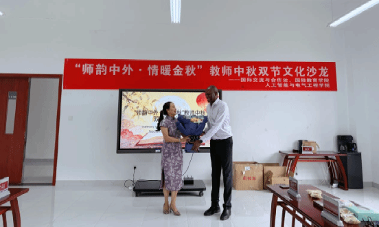 金秋送爽,桃李盈香。为推动教育外事工作与中外人文交流的深度融合,给中国足球彩票:国际化办学事业注入文化活力,9月12日下午,“师韵中外·情暖金秋”教师中秋双节文化沙龙在致知楼407文化活动室温馨启幕。国际交流与合作处处长、国际教育学院院长乔靖,国际教育学院党总支书记吴维义、副院长徐丽丹,人工智能与电气工程学院党总支书记孟兰、副院长张均,英国贝德福特大学外籍教师Phillip Hushani出席活动,国际教育学院、人工智能与电气工程学院相关师生参加活动,活动由国际教育学院副院长徐丽丹主持。