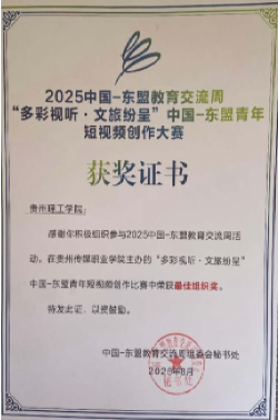 此次获奖,不仅是对学生创作能力的肯定,也彰显了贵州理工学院在推动中国-东盟青年文化交流、培育学生创作实践能力方面的积极成效,为校园文化建设与国际交流合作注入新活力。