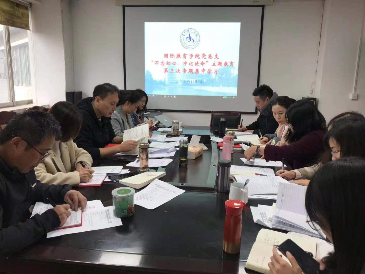 国际教育学院党总支举行“不忘初心、牢记使命”主题教育第三次专题集中学习研讨