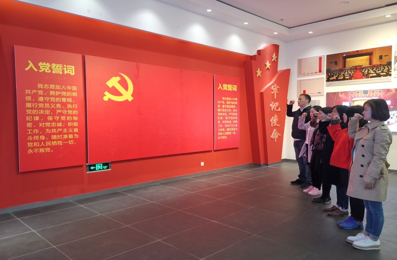参观结束后,全体党员面向党旗进行宣誓,重温入党誓词。