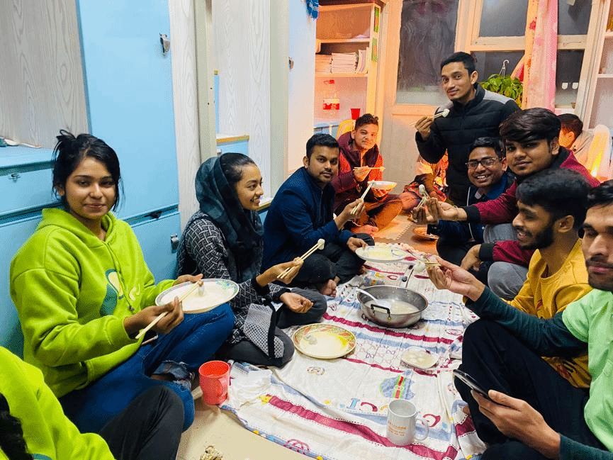 疫情期间,欧阳老师定期前往学生宿舍慰问在校国际学生,为学生采购口罩、体温计和常备感冒药等送往学生宿舍,向学生介绍如何正确使用相关医疗用品、如何预防新冠病毒,安抚焦虑学生情绪。除夕当天,学院党总支书记孙凯和欧阳老师前往学生宿舍慰问在校国际学生,排查了在校学生并告知在校学生勤洗手、多开窗、外出戴口罩等预防新冠病毒相关知识。大年初三,两名孟加拉学生有了感冒症状,学院党总支书记孙凯、校医院医生和欧阳老师第一时间到达现场给学生检查身体并陪同学生前往医院,后联系后勤处工作人员及时对国际学生宿舍进行消毒处理。大年初七,欧阳老师坚守岗位配合校领导检查指导国际学生疫情防控工作,检查了学生宿舍,排查学生流动情况,询问学生需求与困难等做好好国际学生疫情防控工作。正月十五元宵节,欧阳老师前往超市为学生采购元宵、鸡蛋、鸡肉等事物,前往学生宿舍探望学生,学生们非常感动。