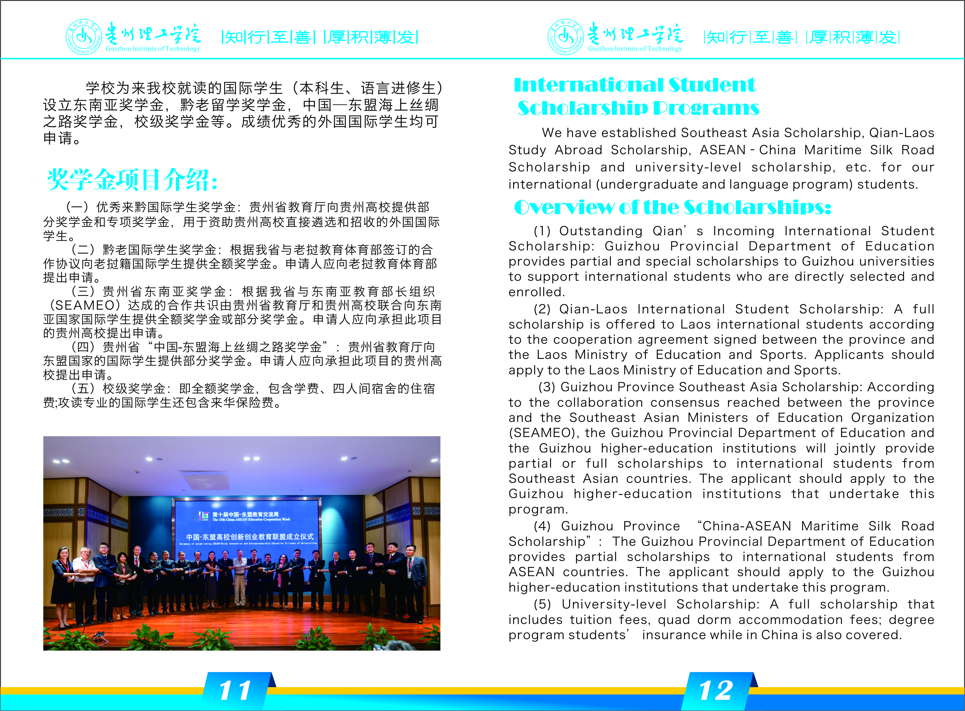 Qian-Laos International Student Scholarship: A full scholarship is offered to Laos international students according to the cooperation agreement signed between the province and the Laos Ministry of Education and Sports. Applicants should apply to the Laos Ministry of Education and Sports.