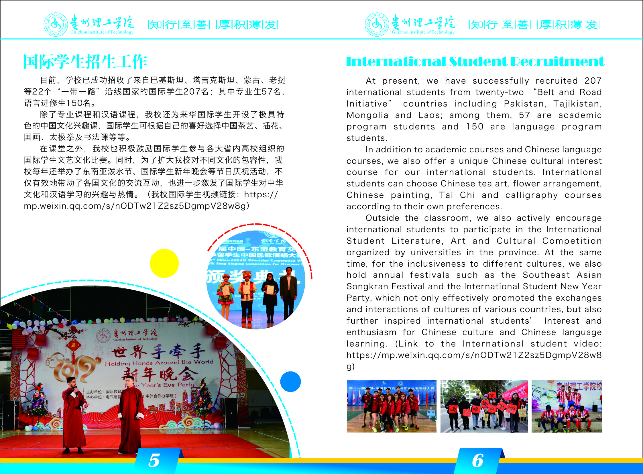 在课堂之外,中国足球彩票:也积极鼓励国际学生参与各大省内高校组织的国际学生文艺文化比赛。同时,为了扩大中国足球彩票:对不同文化的包容性,中国足球彩票:每年还举办了东南亚泼水节、国际学生新年晚会等节日庆祝活动,不仅有效地带动了各国文化的交流互动,也进一步激发了国际学生对中华文化和汉语学习的兴趣与热情。(中国足球彩票:国际学生视频链接:https://mp.weixin.qq.com/s/nODTw21Z2sz5DgmpV28w8g)