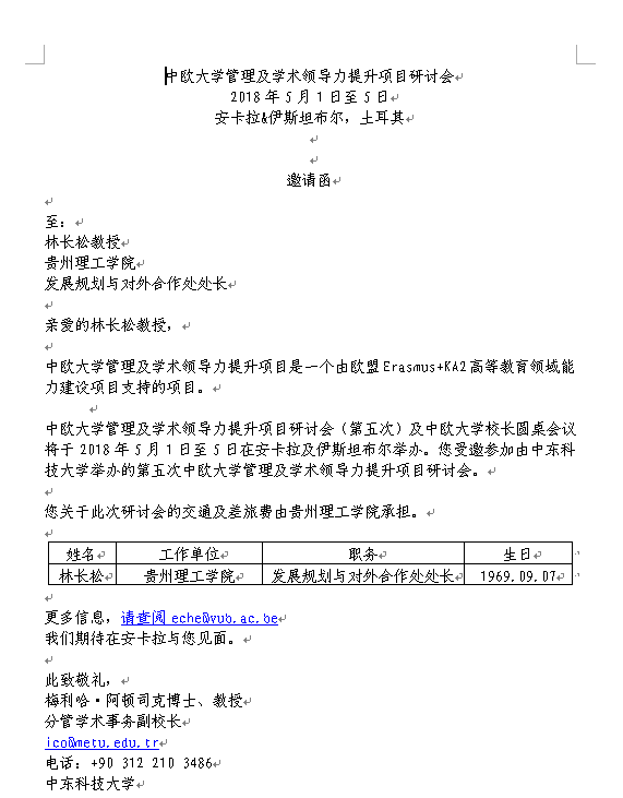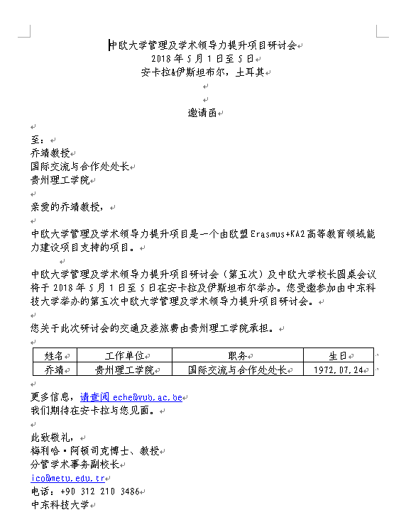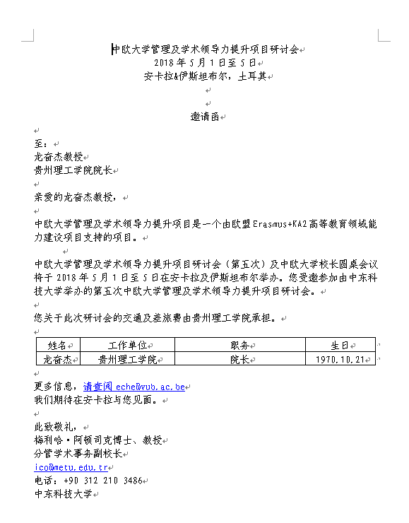 | 上午:中东科技大学,参加中欧大学管理及学术领导力提升项目研讨会,开幕式、主题演讲及讨论交流
