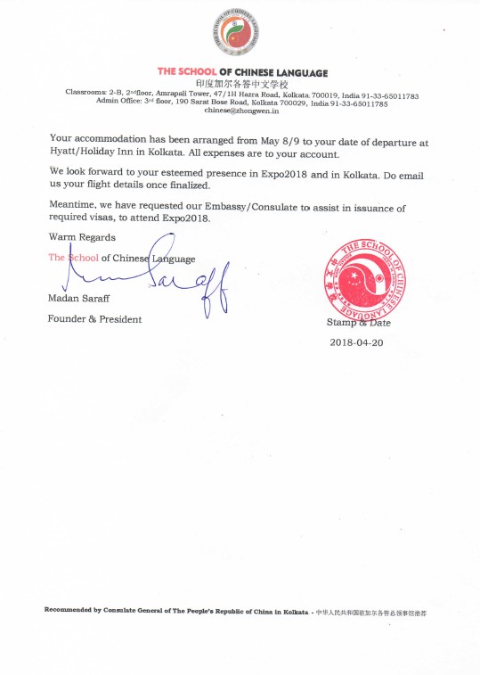 | 印度加尔各答中文学校由马丹·萨拉夫创办,成立于2008年7月16日,中国驻加尔各答总领事馆总领事主持了建校典礼。2010年通过签署与加尔各答大学及MAKAIS亚洲研究所(印度政府研究机构)的合作项目协议来推广汉语的传播。2011年,为了推广中国高等教育中的英文授课项目,中文学校与中国一流大学达成合作伙伴框架协议,从而使印度学生能够利用高质量且可担负得起的中国高等教育学习英文授课课程。2012年获得北京国家汉办和汉考国际批准,授权成为印度具有国际认可的汉语水平测试中心,该中心可对学生进行培训并举行汉语水平考试。2013年至2014年,为推广中国高等教育,加尔各答大学与云南师范大学、加尔各答印度管理学院与清华大学经济管理学院之间展开了合作,该项目由加尔各答中文学校发起。2018年,加尔各答中文学校与贾达普大学签署汉语教学合作项目协议。2015年至2016年,加尔各答中文学校发起并签署与贾达普大学、云南师范大学、江苏大学之间的推广中国高等教育的合作项目。
