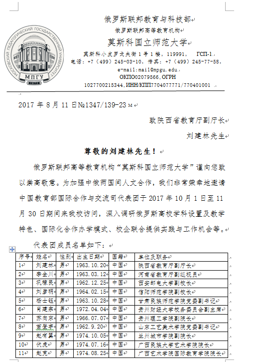 | 执行赴俄罗斯高等教育与文化创意产业培训团任务