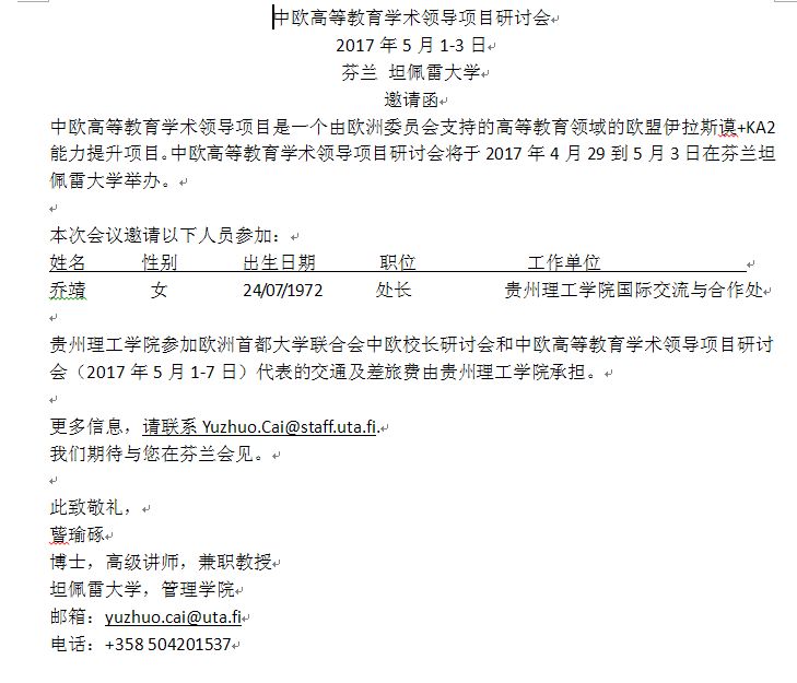 | 上午:坦佩雷大学,参加中欧高等教育学术领导项目研讨会,开幕式、主题演讲及讨论交流