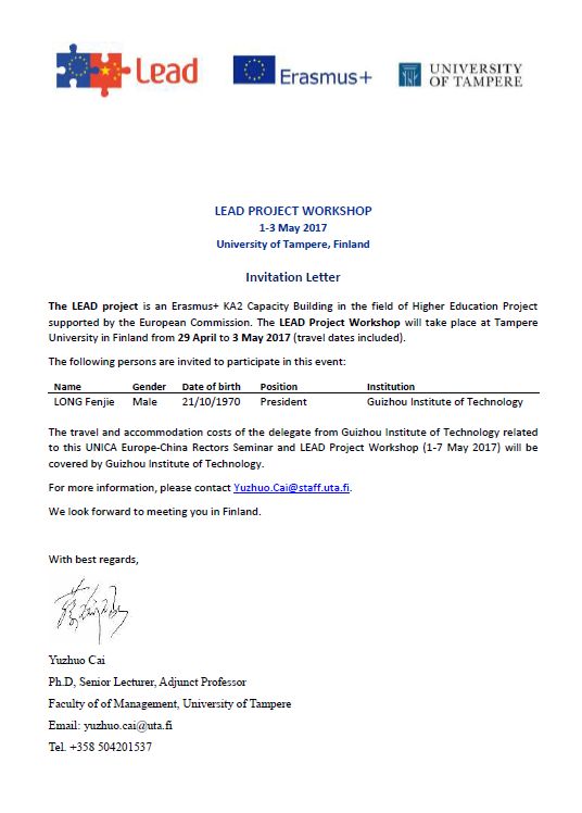 根据中央、国务院出台的因公出国(境)管理工作有关规定,现对贵州理工学院龙奋杰等3人赴芬兰及葡萄牙执行参加由“中欧高等教育学术领导项目”举办的“中欧大学校长研修班”任务公示如下: