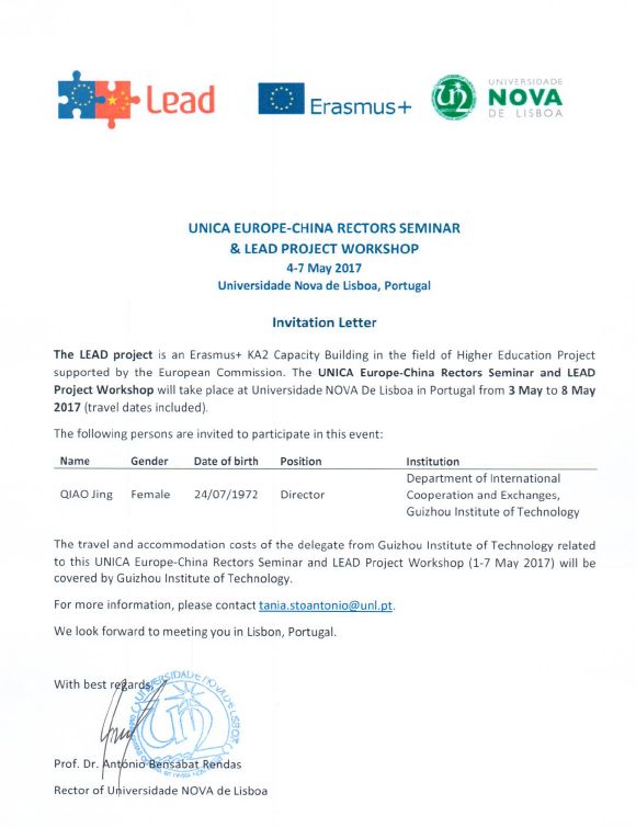 | 上午:新里斯本大学,参加中欧大学校长研讨会,欢迎仪式及研讨