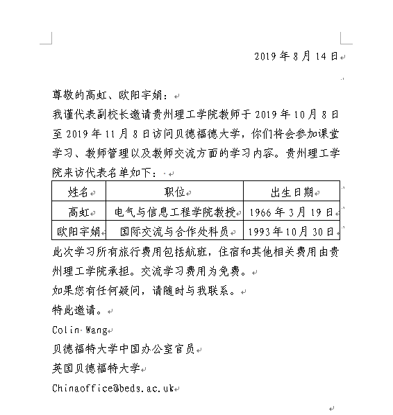 根据中央、国务院出台的因公出国(境)管理工作有关规定,现对贵州理工学院高虹等2人赴英国执行贝德福特大学交流学习任务公示如下: