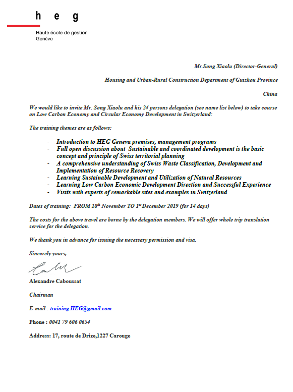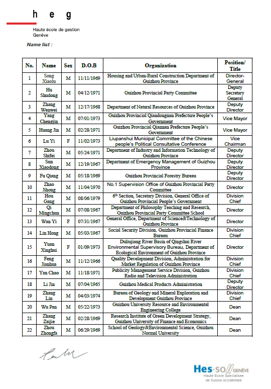 根据中央、国务院出台的因公出国(境)管理工作有关规定,现对贵州理工学院乔靖赴瑞士执行参加低碳经济和循环经济发展培训班任务公示如下: