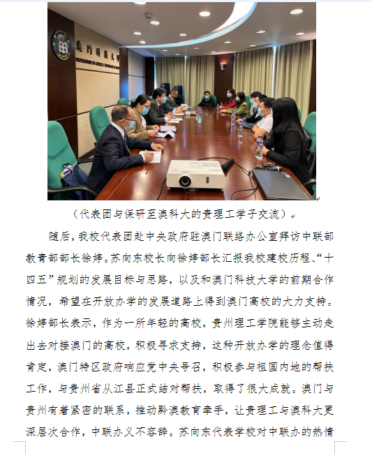 与澳门大学、澳门科技大学领导座谈交流、并拜访了中央政府驻澳门联络办公室拜访中联部教青部 |
